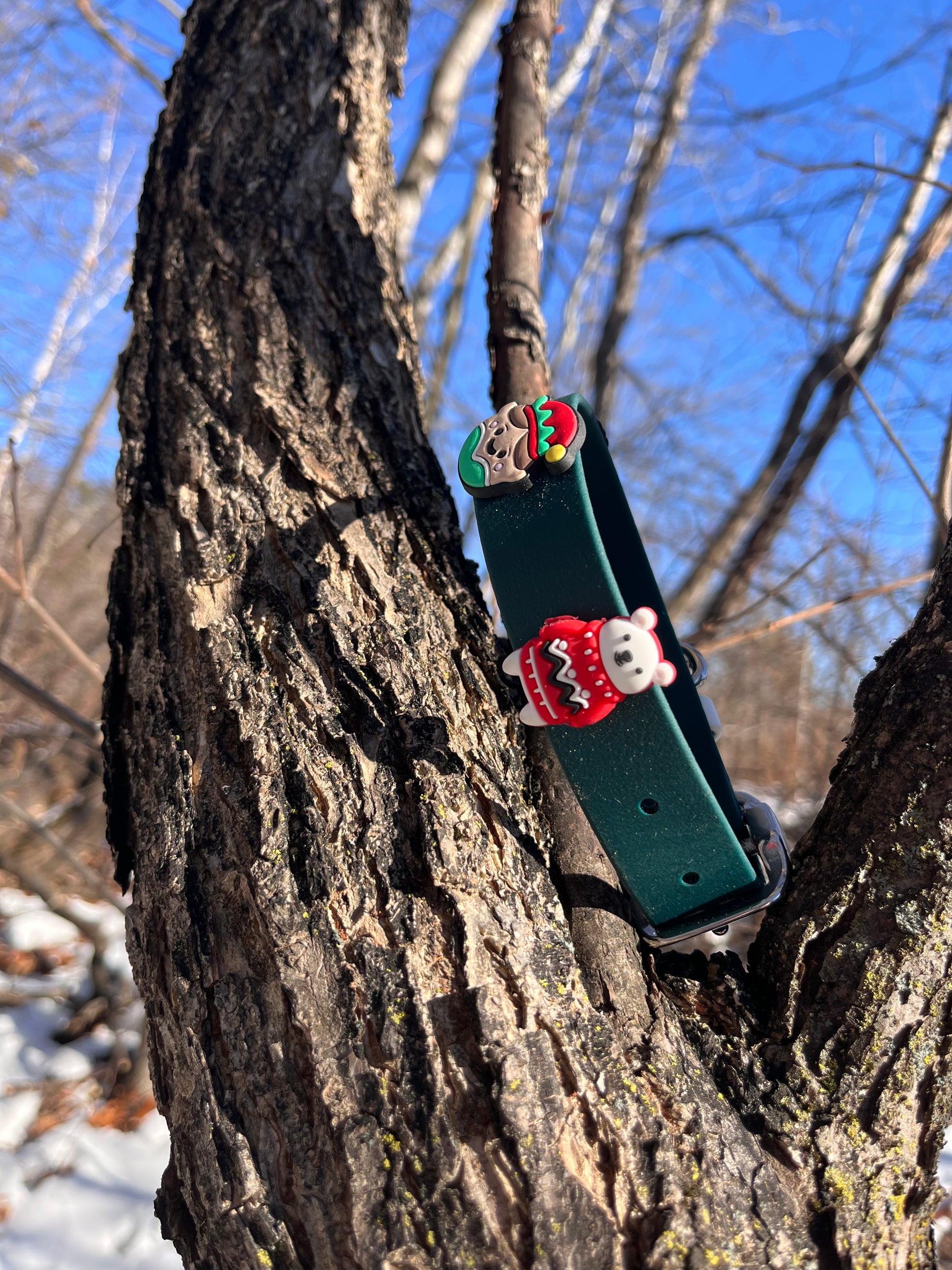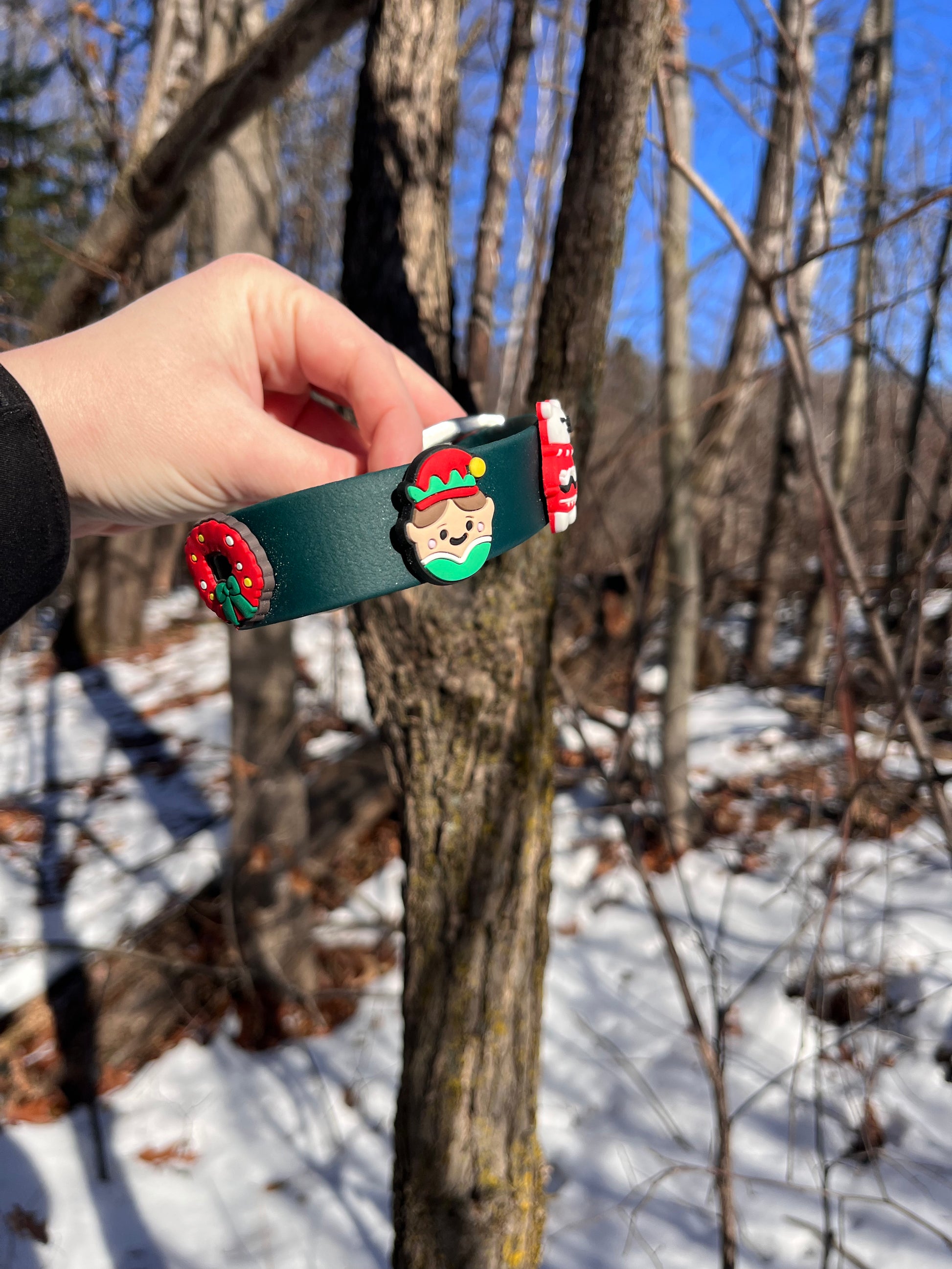 Le modèle VALAR créé en 1 pouce de largeur vert forêt avec pins sur la thématique de Noël